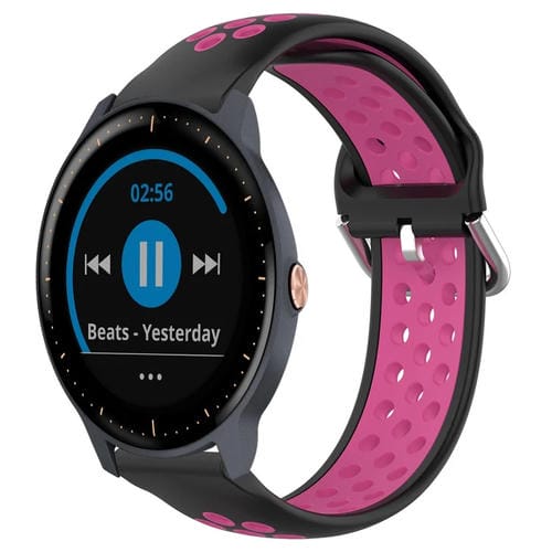Banda de Reloj para Garmin Vivoactive3 Music 20mm Silicona Deportiva Transpirable Perforada (Negro + Rojo Rosa)