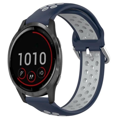 Correa de Reloj Silicona Deportiva para Garmin Vivoactive4 22mm Perforada (Azul Medianoche + Gris)