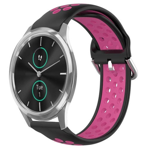 Correa de Reloj para Garmin Vivomove Luxe 20mm Silicona Deportiva Transpirable Perforada (Negro + Rojo Rosa)