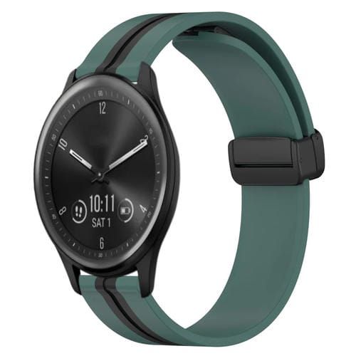 Correa de Reloj para Garmin Vivomove Sport 20mm Silicona con Cierre Magnético Plegable (Verde Oliva + Negro)