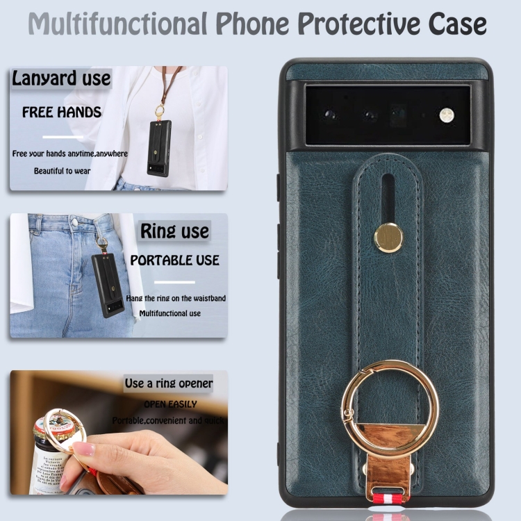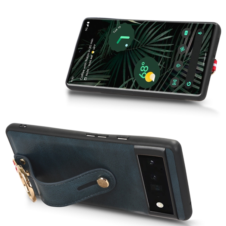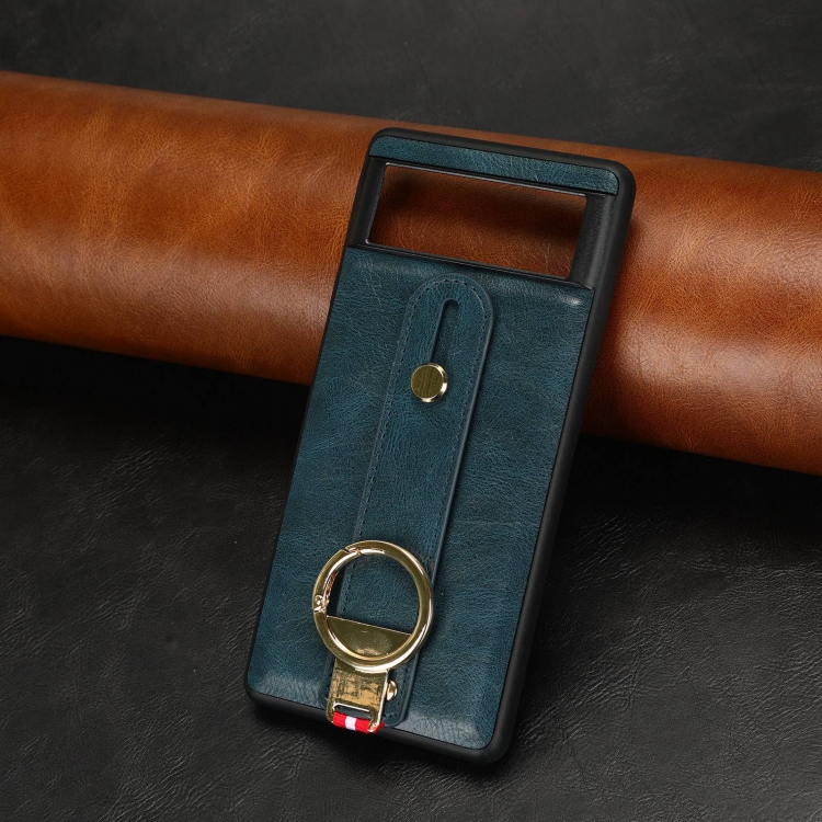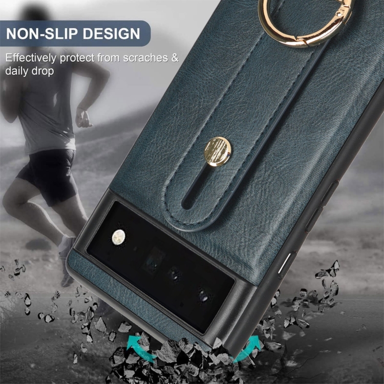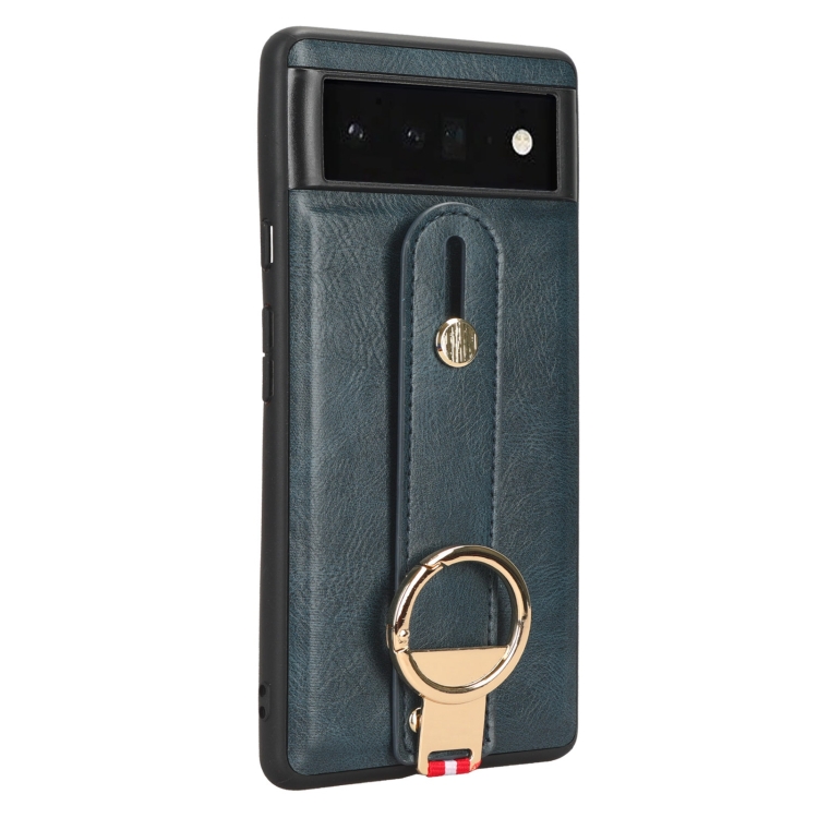 Funda Trasera de Cuero para Google Pixel 6 con Muñequera (Azul)