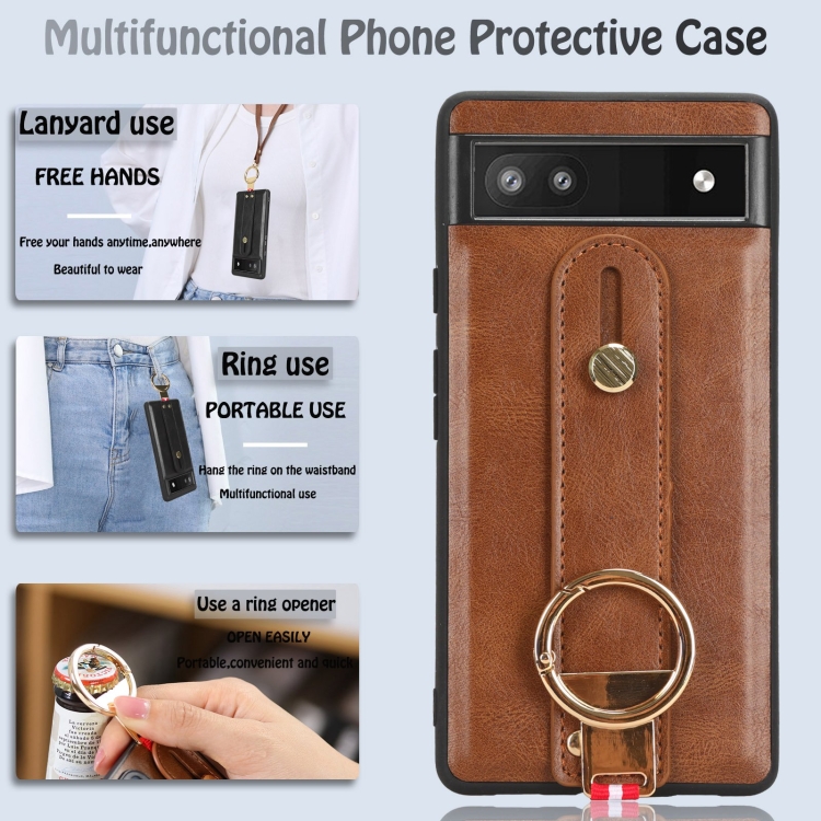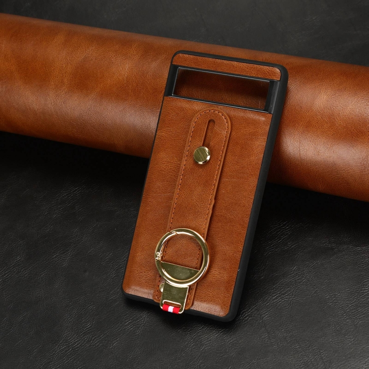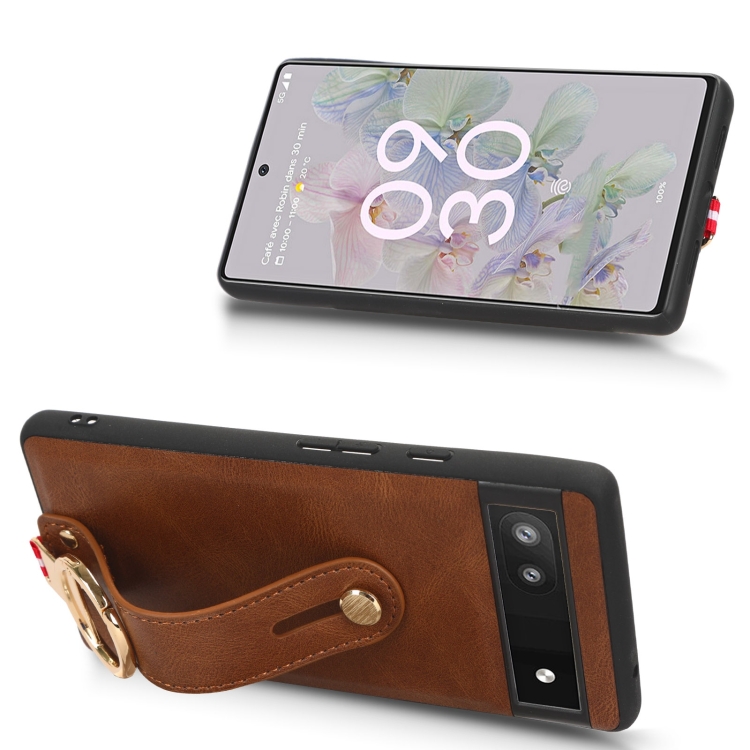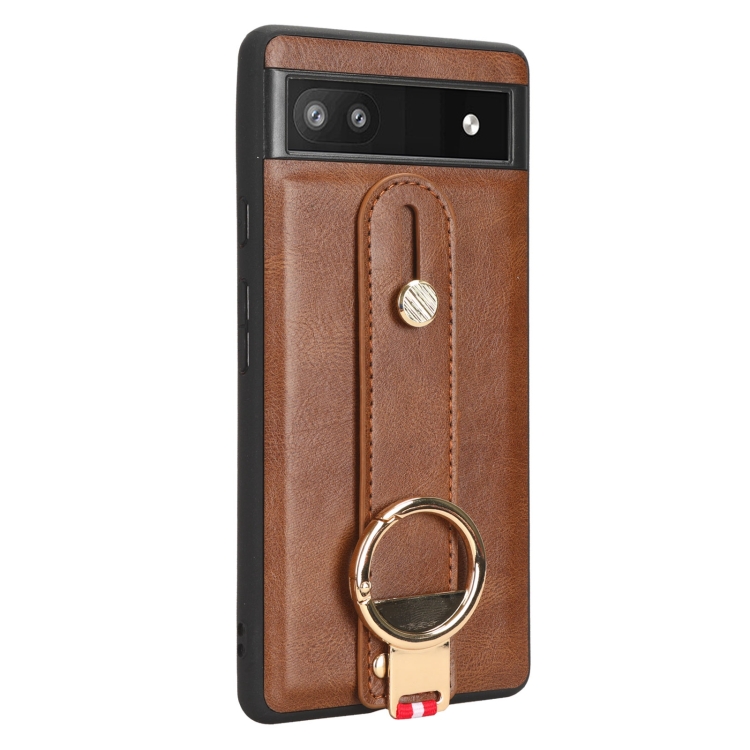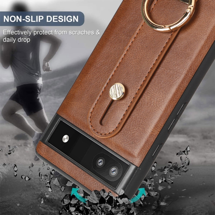 Funda Trasera Muñequera de Cuero para Google Pixel 6A (Marrón)