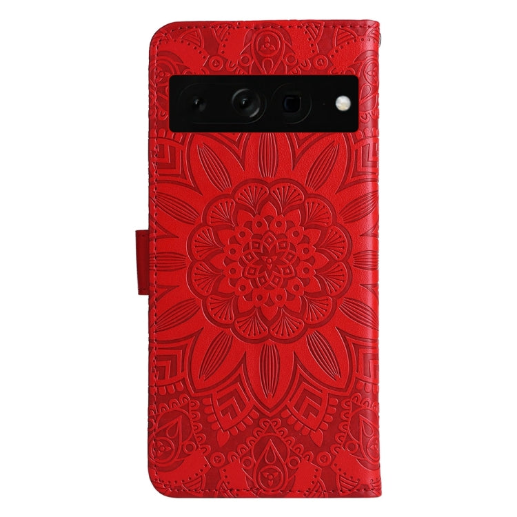 Estuche para Google Pixel 7 Pro de Cuero con Estampado de Girasol en Relieve (Rojo)