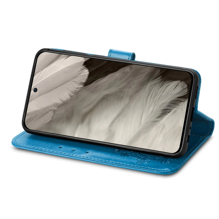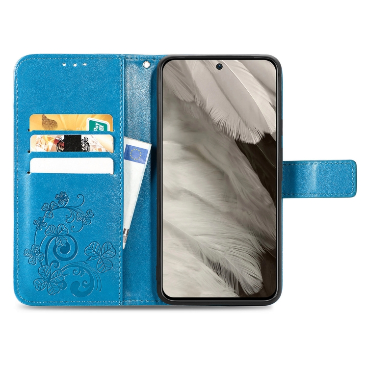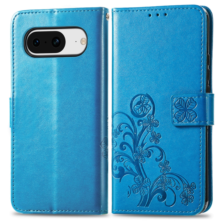 Funda para Teléfono Google Pixel 8 Cuero en Relieve con Cierre de Cuatro Hojas (Azul)