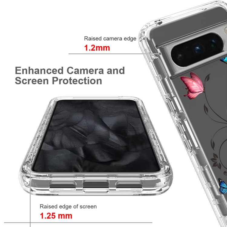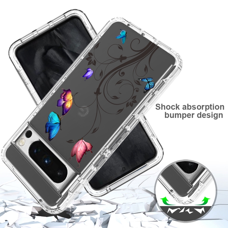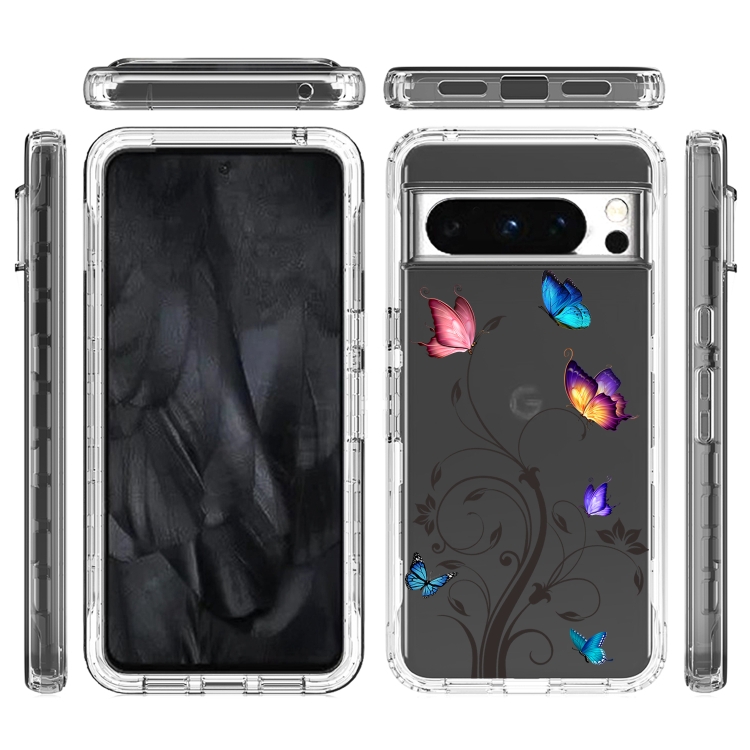 Estuche Transparente para Google Pixel 8 Pro con Pintura de Mariposas y Árboles