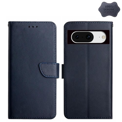 Funda para Google Pixel 8A Ht02 con Tapa de Cuero Genuino a Prueba de Huellas (Azul)