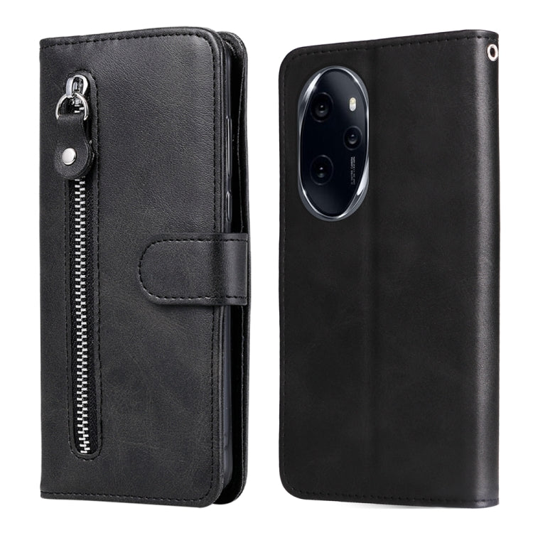 For Honor 100 Pro Fashion Calfskin Texture Zipper Leather Phone Case(Black)