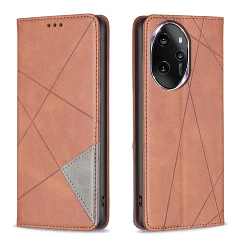 Funda de Teléfono Honor 100 Pro Cuero Magnético Textura Rombo (Marrón)