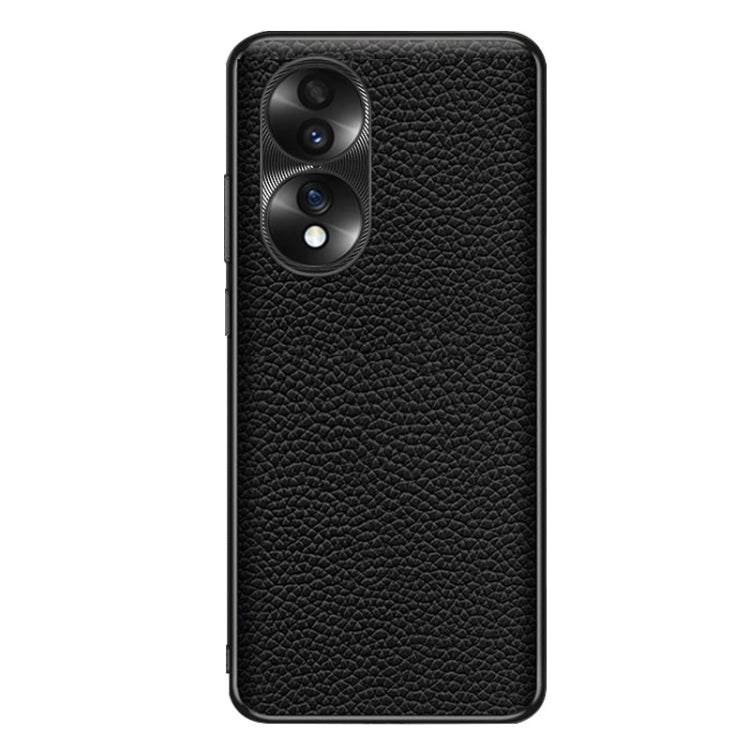 Funda para Honor 70 con Textura Litchi de Cuero Genuino (Negro)