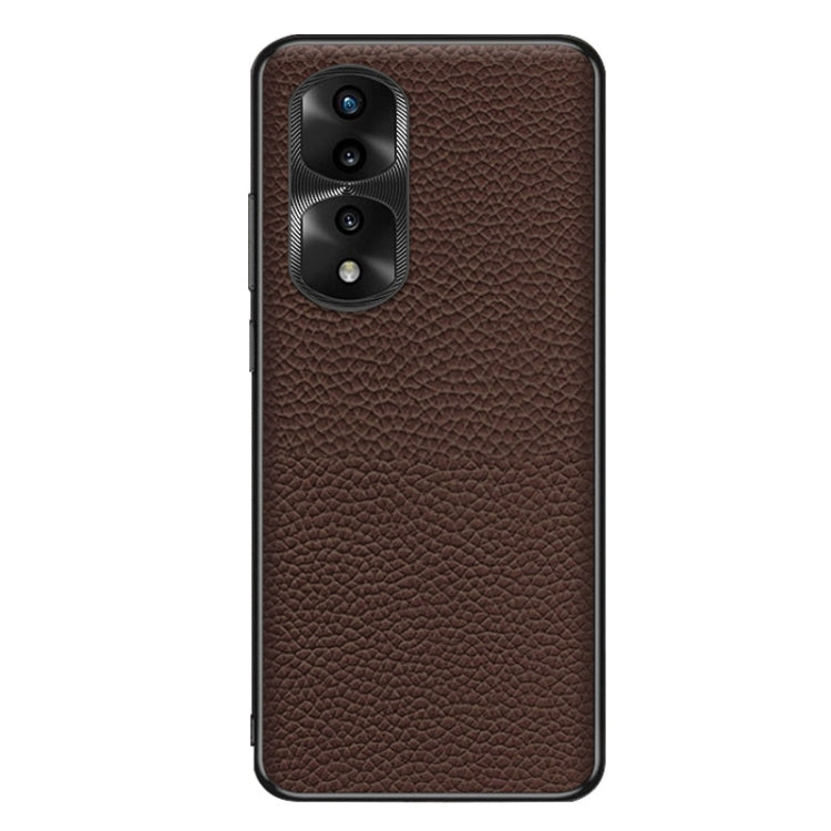 Funda de Teléfono Honor 70 Pro Cuero Genuino Textura Litchi (Café)