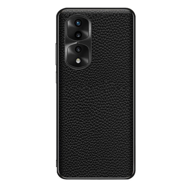 Funda de Teléfono Honor 70 Pro con Textura Litchi de Cuero Genuino (Negro)