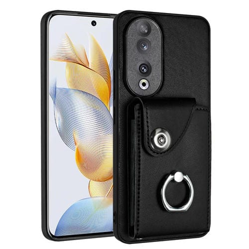Funda para Honor 90 de PU con Soporte para Anillo y Bolsa para Tarjeta (Negro)