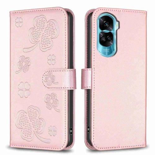Funda para Honor 90 Lite / X50I de Cuero con Relieve de Cuatro Hojas (Rosa)