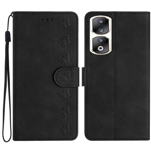 Funda de Cuero para Honor 90 Pro Seven Butterflies en Relieve (Negro)