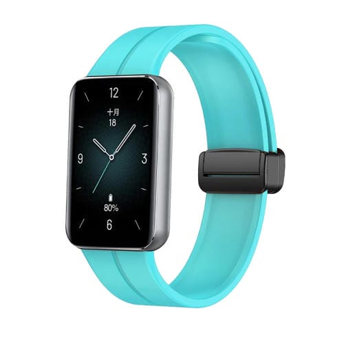 Correa de Silicona para Honor Band 9 con Hebilla Negra Plegable Magnética (Verde Azulado)