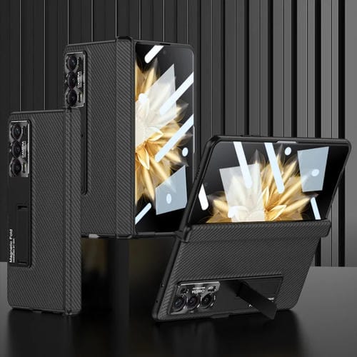 For Honor Magic V2 GKK Leather Flip Phone Case Cover with Built-in Magnetic Hinge and Kickstand (Carbon Fiber)