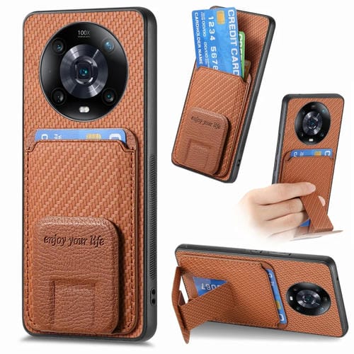 Funda para Honor Magic4 Pro con Soporte Plegable y Bolsa para Tarjetas de Fibra de Carbono (Marrón)