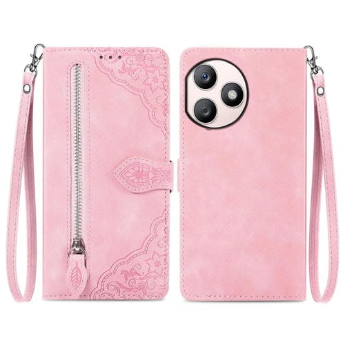Funda para Honor X50I de Cuero con Cremallera y Flores en Relieve (Rosa)