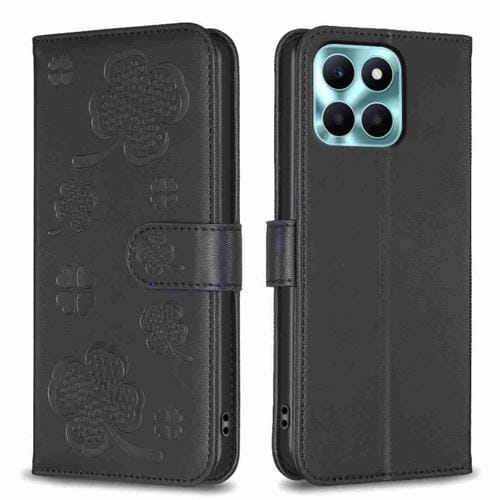 Funda de Cuero para Honor X6A con Relieve de Cuatro Hojas (Negro)
