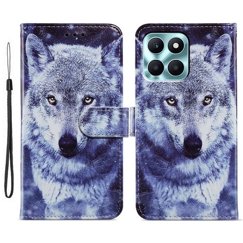 Funda para Honor X6A de Cuero con Tapa Horizontal y Patrón Pintado (Lobo Blanco)