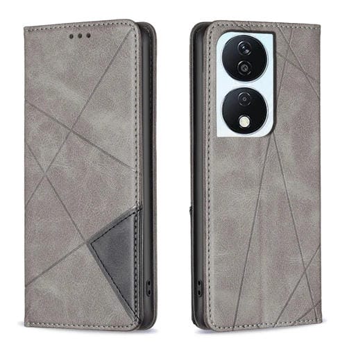 Funda de Cuero Magnético para Honor X7B con Textura de Rombo (Gris)