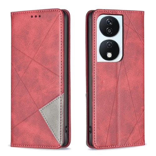 Funda de Cuero Magnético para Honor X7B con Textura de Rombo (Rojo)