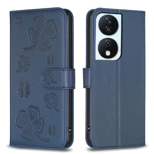Funda para Honor X7B de Cuero con Relieve de Cuatro Hojas (Azul)