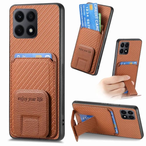 Funda para Honor X8A con Soporte Plegable y Bolsa para Tarjetas de Fibra de Carbono (Marrón)
