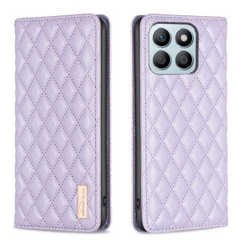 Funda para Honor X8B con Tapa de Cuero Magnético y Diseño Diamond Lattice (Púrpura)