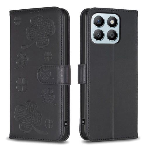 Funda de Cuero para Honor X8B con Relieve de Cuatro Hojas (Negro)