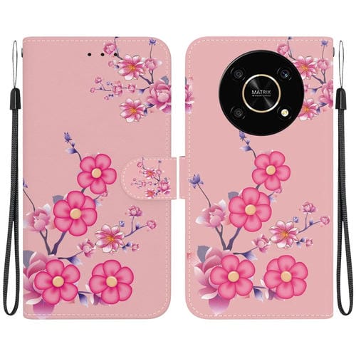 Funda para Honor X9 5G de Cuero con Dibujo Coloreado y Textura de Cristal (Flores de Cerezo)