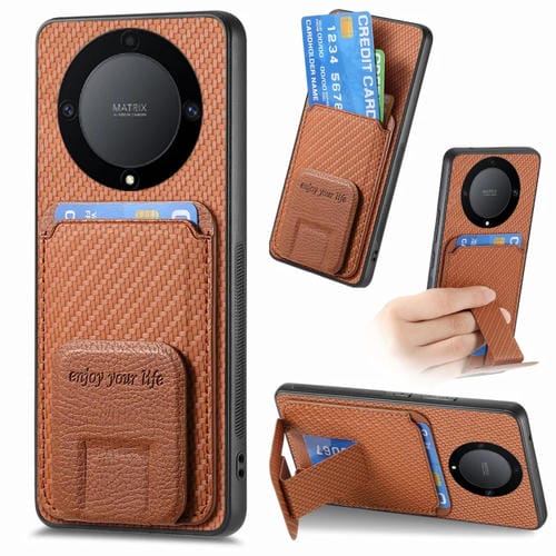 Funda para Honor X9A con Soporte Plegable y Bolsa para Tarjetas de Fibra de Carbono (Marrón)
