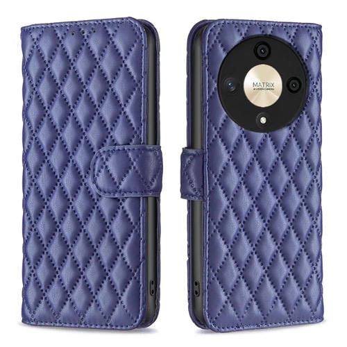 Funda de Cuero con Tapa para Honor X9B y Magic6 Lite 5G Diamond Lattice (Azul)