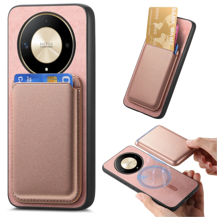 Funda para Honor X9B y Magic6 Lite 5G Retro Magsafe Card Bag con Contraportada (Rosa)