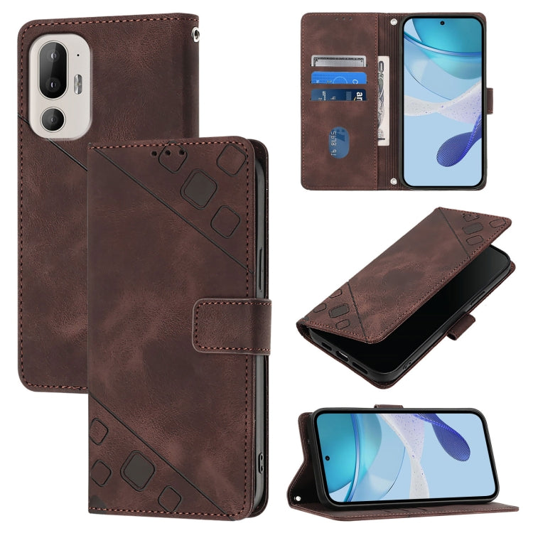 Funda de Cuero para HTC U24 Pro Skin Feel en Relieve (Marrón)