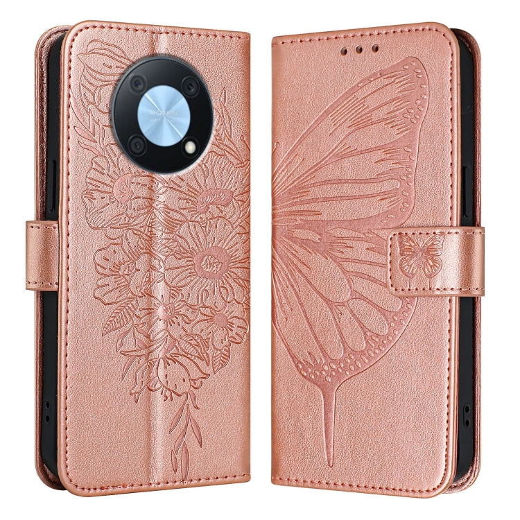 Funda de Cuero Huawei Enjoy 50 Pro 4G Nova Y90 con Mariposa en Relieve (Oro Rosa)