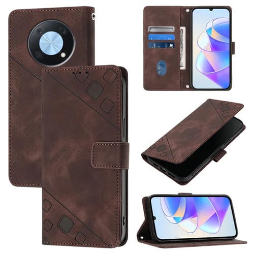 - 1x Funda de Cuero Skin Feel para Huawei Enjoy 50 Pro y Nova Y90 en Relieve (Marrón)