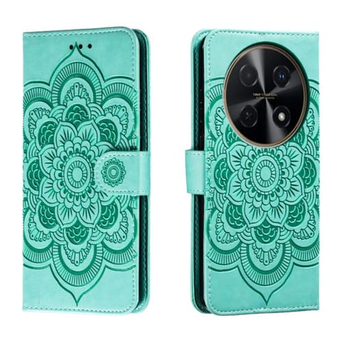 Funda de Cuero para Huawei Enjoy 70 Pro con Patrón en Relieve Sun Mandala (Verde)