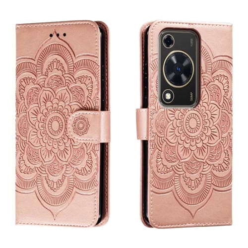 - 1x Funda de Cuero para Huawei Enjoy 70 con Patrón en Relieve Sun Mandala (Oro Rosa)