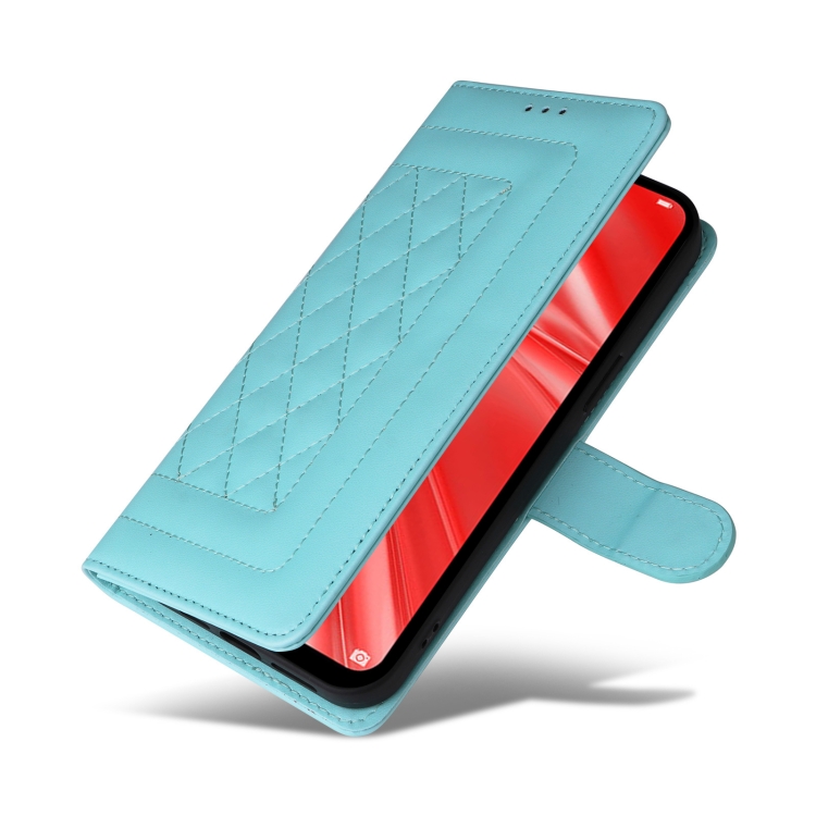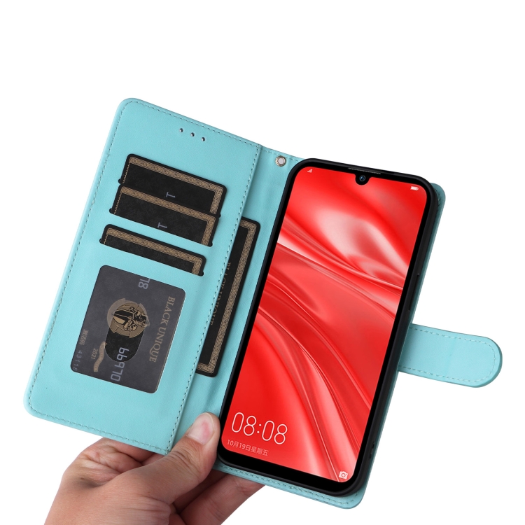 Funda de Teléfono Huawei Enjoy 9S con Tapa de Cuero Diamond Lattice (Verde Menta)