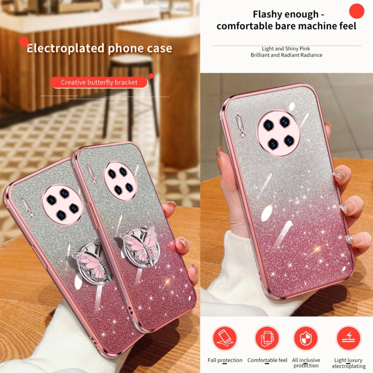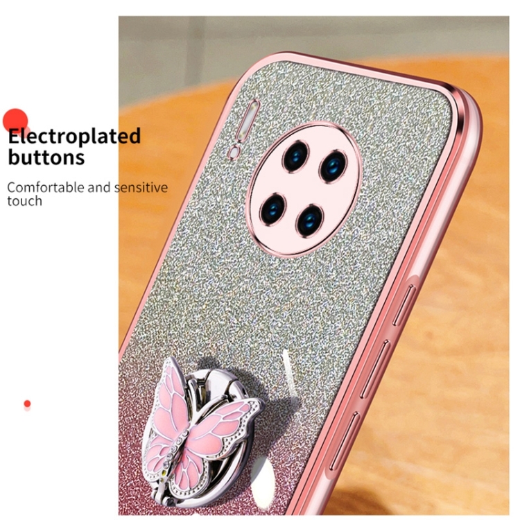 - 1x Funda TPU para Huawei Mate 30 Pro con Soporte de Mariposa y Brillo Degradado (Azul Sierra)