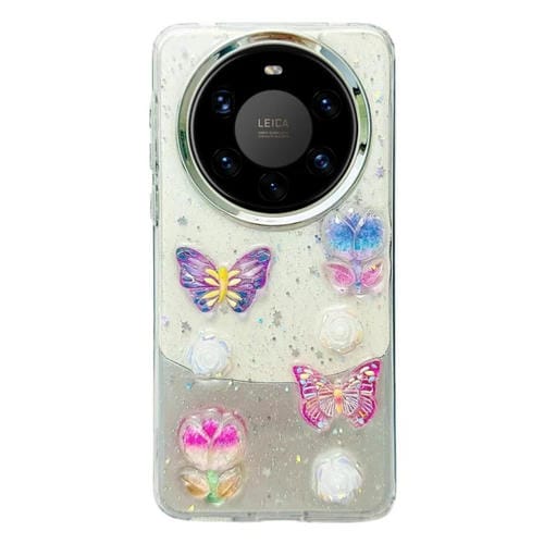 - 1x Estuche TPU Huawei Mate 40 Pro con Mariposas de Cristal Colorido Tridimensional (Flores de Mariposa)