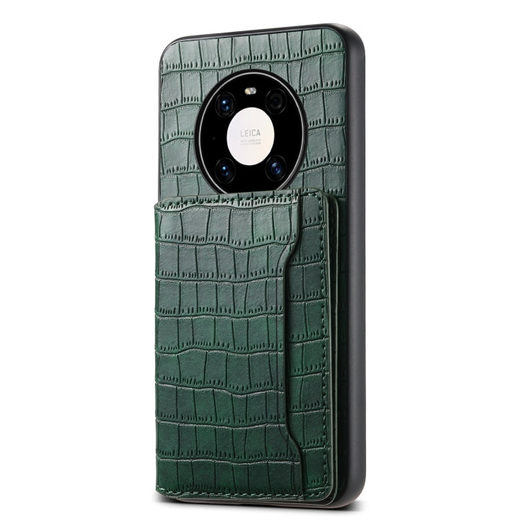 Funda para Huawei Mate 40 Pro con Bolsa para Tarjetas y Textura de Cocodrilo (Verde)