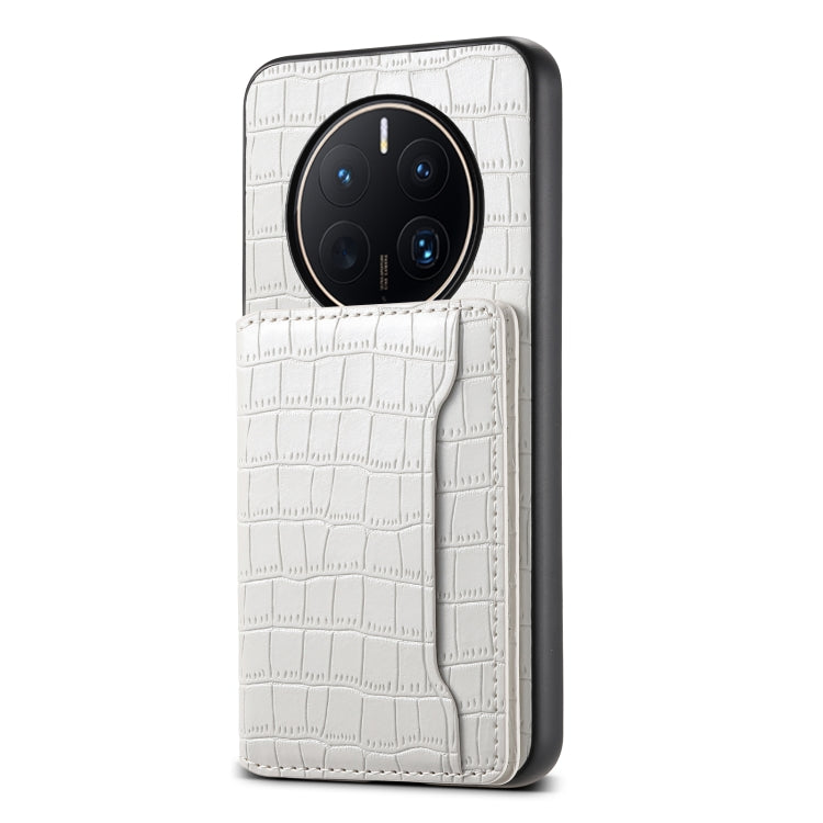 Funda para Huawei Mate 50 Pro con Diseño Bolsa para Tarjetas y Textura de Cocodrilo (Blanco)