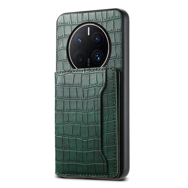 Funda para Huawei Mate 50 Pro con Bolsa para Tarjetas y Textura de Cocodrilo (Verde)