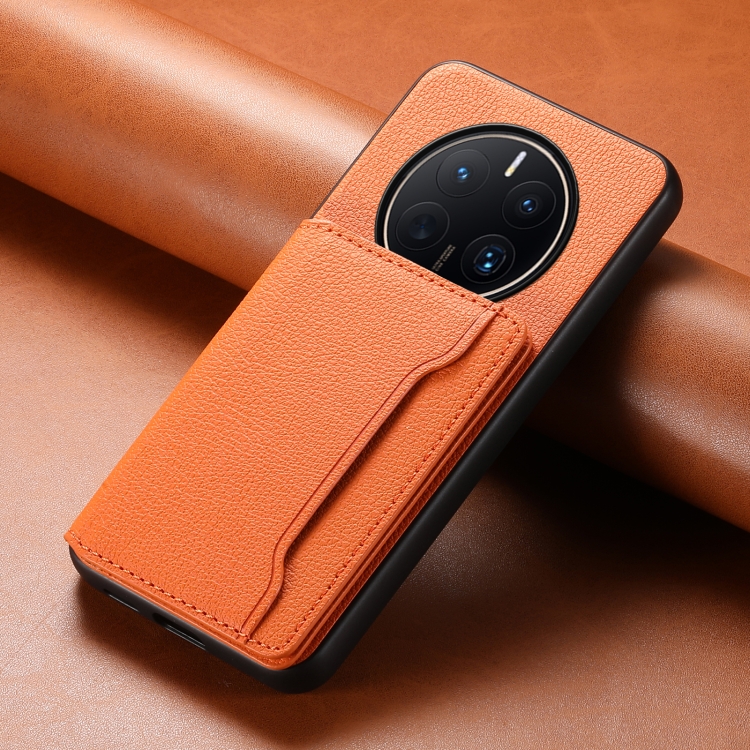 Funda para Huawei Mate 50 Pro con Diseño de Bolsa para Tarjetas y Textura de Pantorrilla (Naranja)