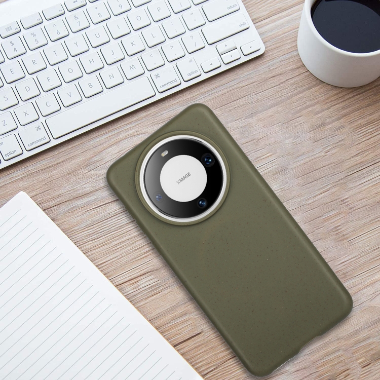 Funda para Huawei Mate 60 Material de Paja Magnético Magsafe de Trigo + TPU (Verde Militar)