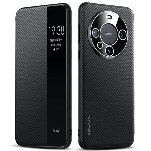 Funda de Cuero Sulada Kevlar 600D para Huawei Mate 60 Pro con Ventana Inteligente (Negro)