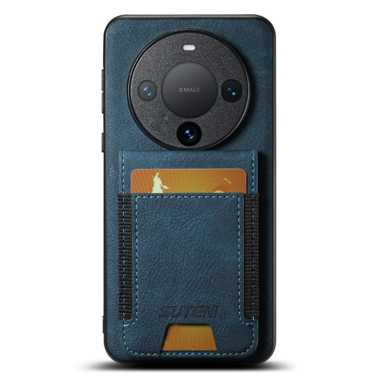 Funda para Huawei Mate 60 Pro Suteni H03 con Soporte para Tarjeta Cuero Litchi (Azul)