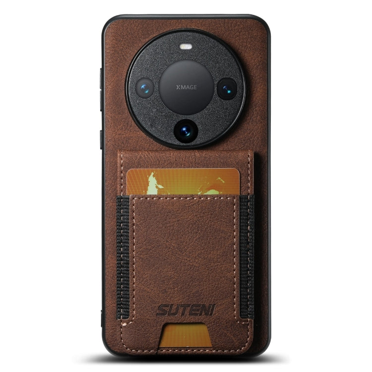 Funda para Huawei Mate 60 Pro Suteni H03 con Soporte para Tarjeta Cuero Litchi (Marrón)